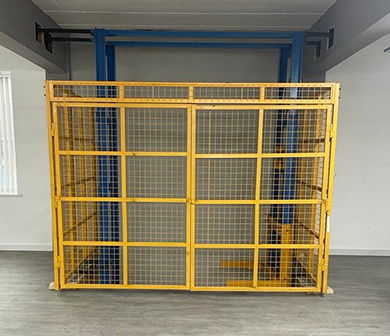 Two-post Cargo Lift is widely used in indoor or outdoor places of the buildings and warehouses to lift goods or pallets between floors.