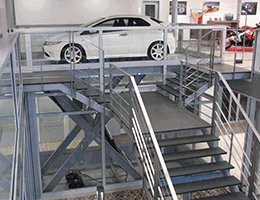 Move cars between split levels within showrooms or garages on different levels.