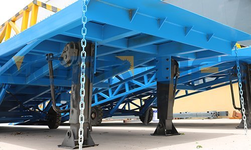 Supporting legs are mainly used to hold the ramp when in storage. It helps to make the ramp more stable and avoid risk when ramp is not connected with truck container. But during goods handling work, they must be retracted for safe factors. Why? Please refer to this post to understand detail information.