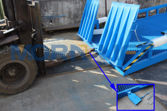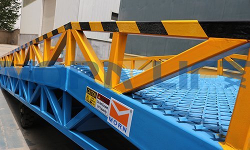 Stability is never an issue with the forklift ramp. When it’s in use, simply use the tyre blocks to stabilize the wheels, and the forklift will stay steady and secure as it moves on the ramp. The solid tires are standard on all MORN mobile yard ramps and are ideal for all applications. The tires do not require air to fill, are maintenance-free and have lubricated for life bearings.