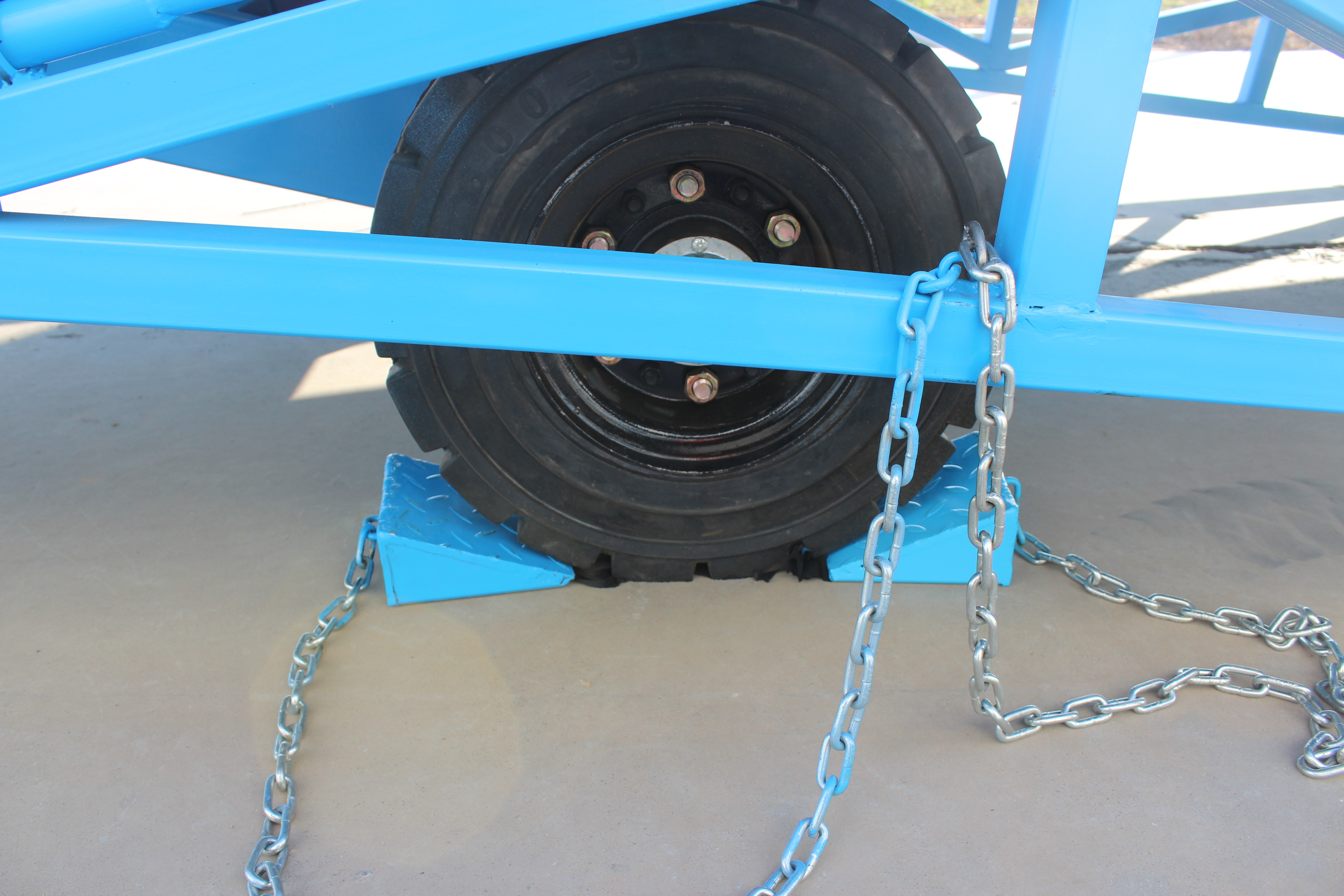 This recommendation is especially applicable for mobile loading dock ramps with tires which usually are solid tires in type. Although such solid tires are hard enough to move the container ramp and support the body structure firmly, it will crackle or deform after longtime use. So daily inspection on the tires is a must to keep the good condition of mobile loading container ramps.
