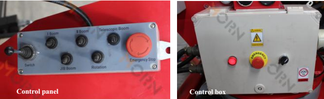 Control box & control panel: to control the operation and safety of using the trailing boom lift.
